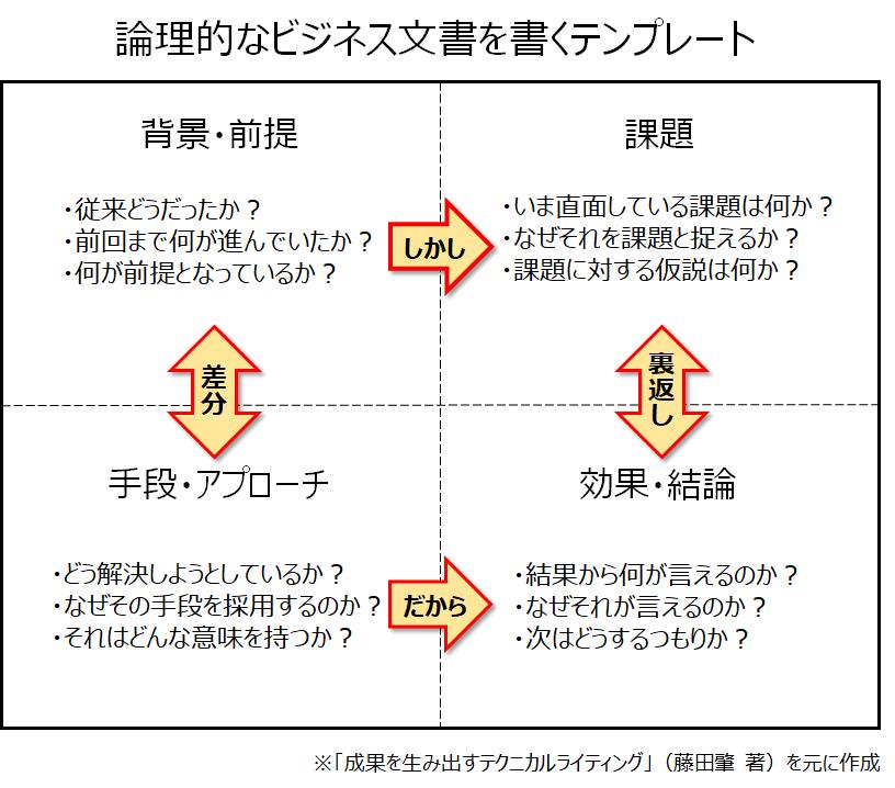 このように、4要素間のつながりをクリアにすることで、わかりやすいビジネス文書が書けるようになります。