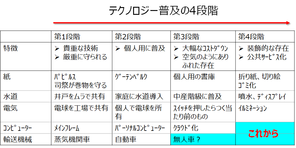 他のテクノロジーも同様に、上記の4段階を経て普及が進みます。