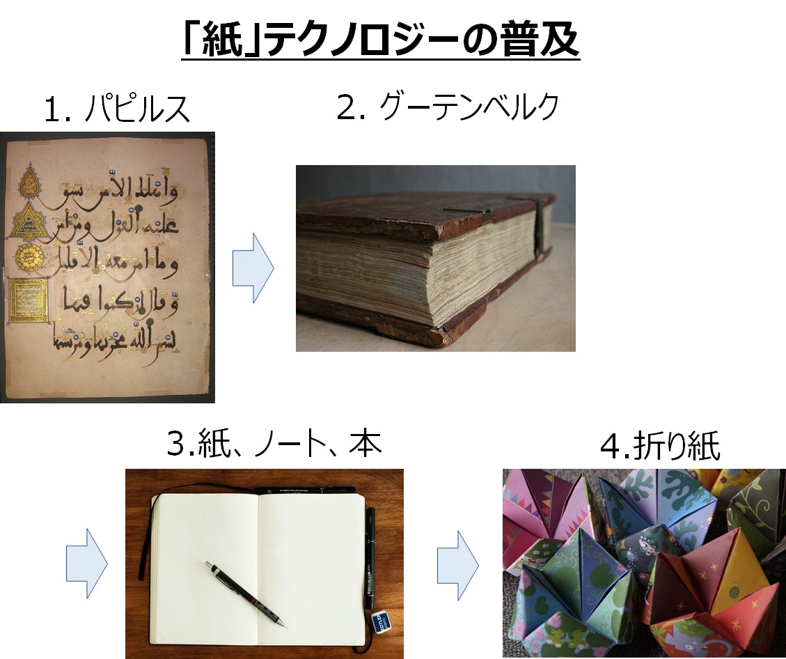 ルネサンス時代にグーテンベルクが活版印刷技術を発明すると状況が変わり、個人が紙を所有するようになります。