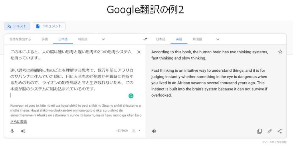 たとえば、筆者のサイトの文章をGoogle翻訳で英語に翻訳してみました。