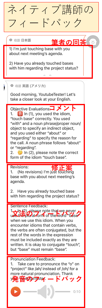 具体的にレッスンで、講師は次のフィードバックをしてくれます。
