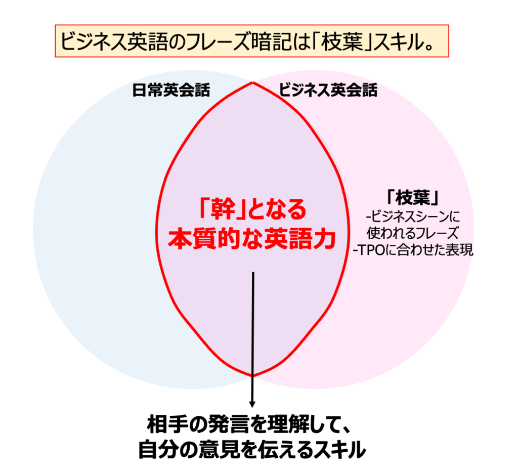 なぜなら、ビジネス英語においてフレーズ暗記は「枝葉」だからです。