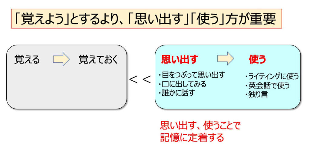 さらに、脳科学の研究から、人の記憶は「覚えようとするとき」ではなく「思い出そうとするとき」に定着することがわかっています。