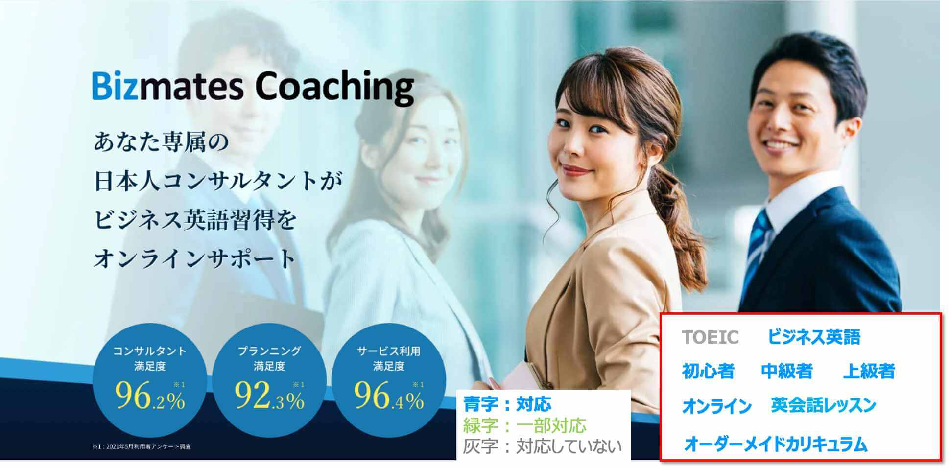 | ビズメイツコーチング | 週1回 | 週7回(毎日) | チャット, メール | 日本人, フィリピン人 | オンラインのみ | |