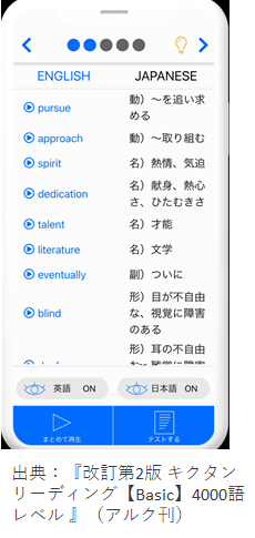 ここから次第にトレーニングの負荷を上げていく構成になっており、音読も単に英文を見ながらの音読からスタートし、次は英文を見ずにリピートする、次は暗唱、というふうにレベルアップしていきます。最終的にはシャドーイングができるような状態までトレーニングすることが可能です。