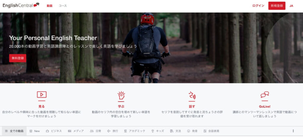 中でも英会話学習に最適なのが、1万本以上の動画を配信している「English Central」。