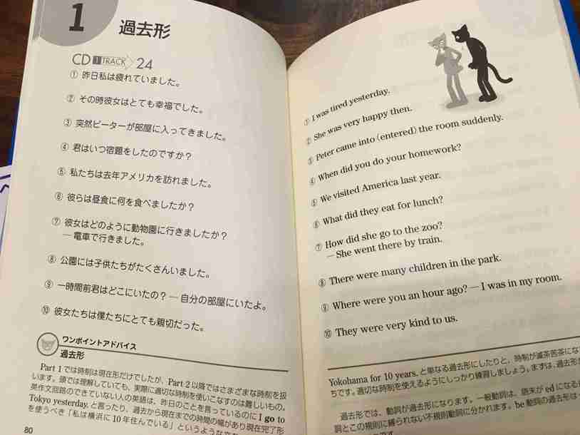 1ページ10個の例文が載っています。英訳を最低3回ずつ繰り返します。