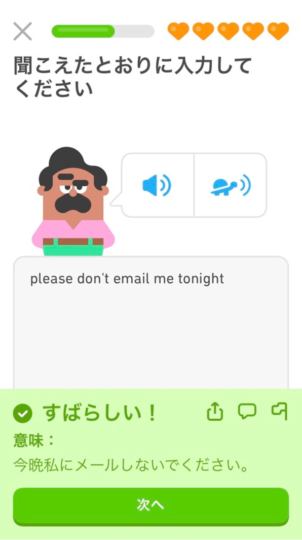 アプリ「Duolingo」では、ゲーム感覚で楽しくディクテーションに取り組めます。
