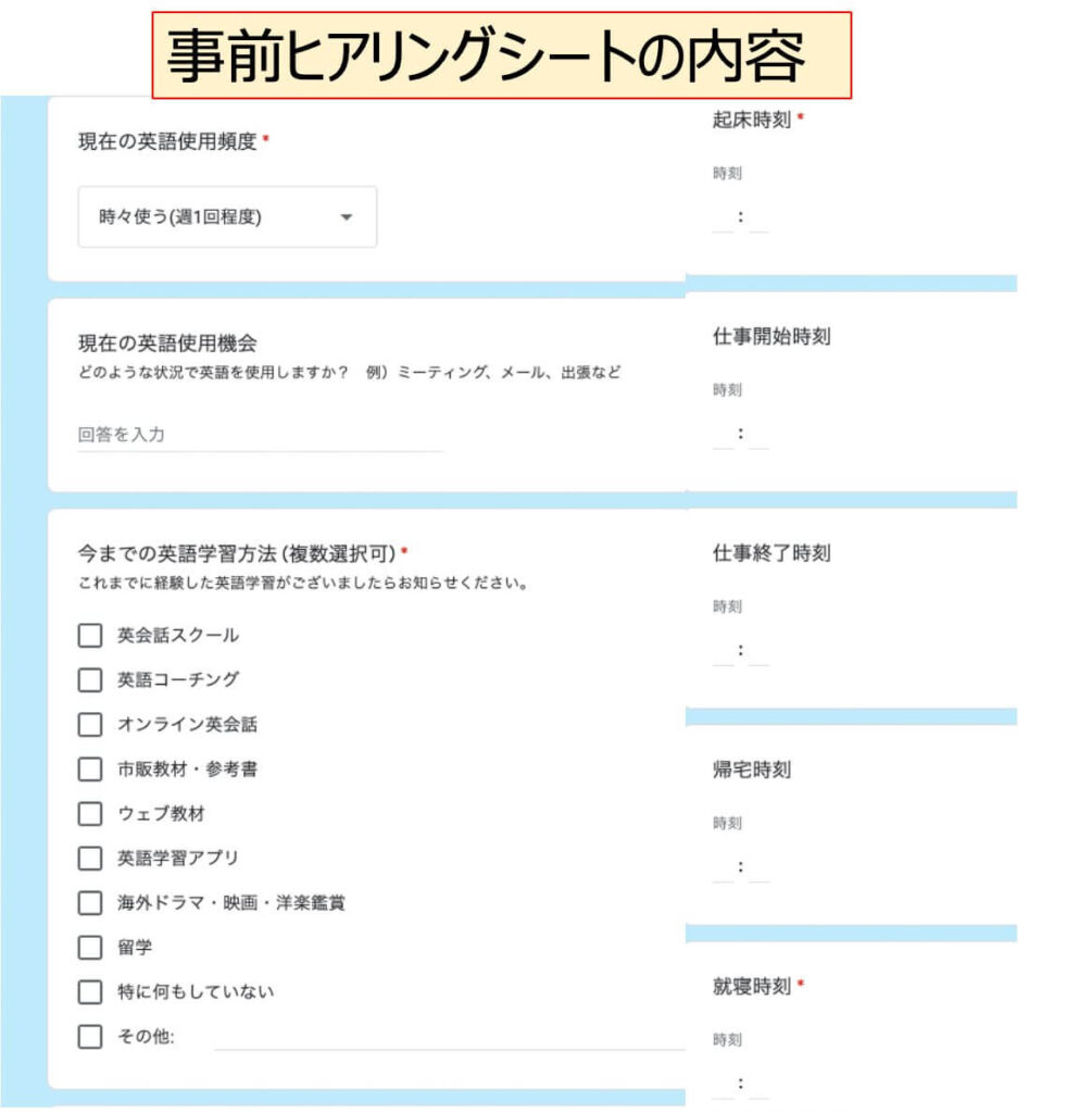 イングリードの公式HPから無料カウンセリングに申し込むと、事前ヒアリングシートが送られてきます。