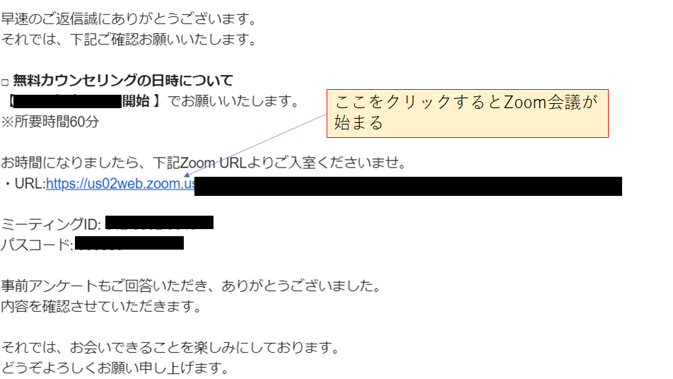 当日はオンライン会議システムのZoomでカウンセリングを受けます。
