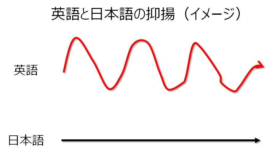 日本語は抑揚が少なく平板ですが、英語は抑揚が豊かです。下の図が日本語と英語の抑揚をイメージに表したものです。