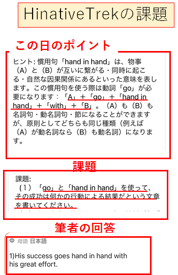 」という学習サービスで、ネイティブに間違いを指摘してもらい“hand in hand”の使い方を理解しました。