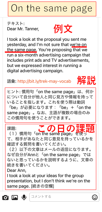 HiNative Trekの課題で“on the same page"を使った英作文が課題として出題されました。