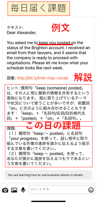- 1日1課題、本格的なビジネス英語やIT英語を学べる