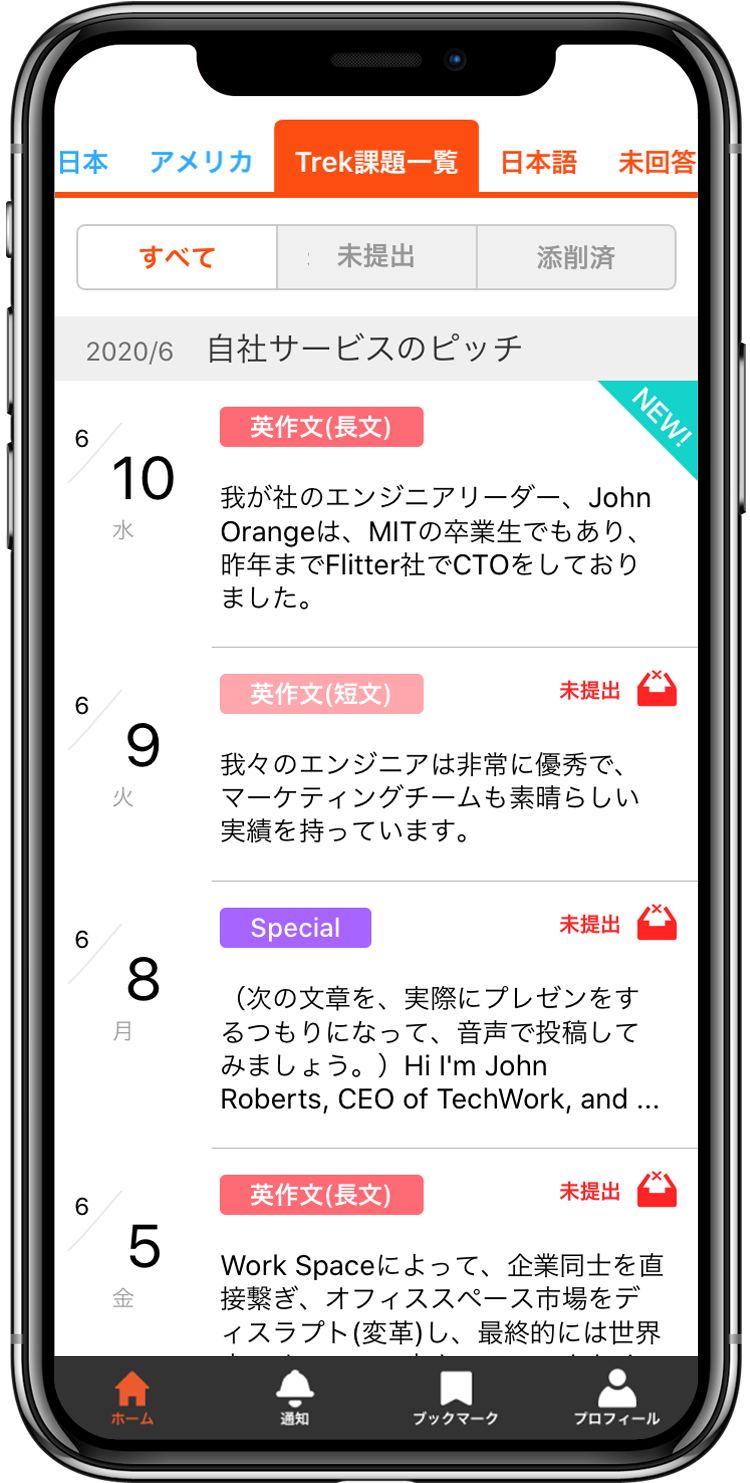 ビジネス経験のあるアメリカひとネイティブ講師が、課題を添削してくれて発音までしてくれるサービス。