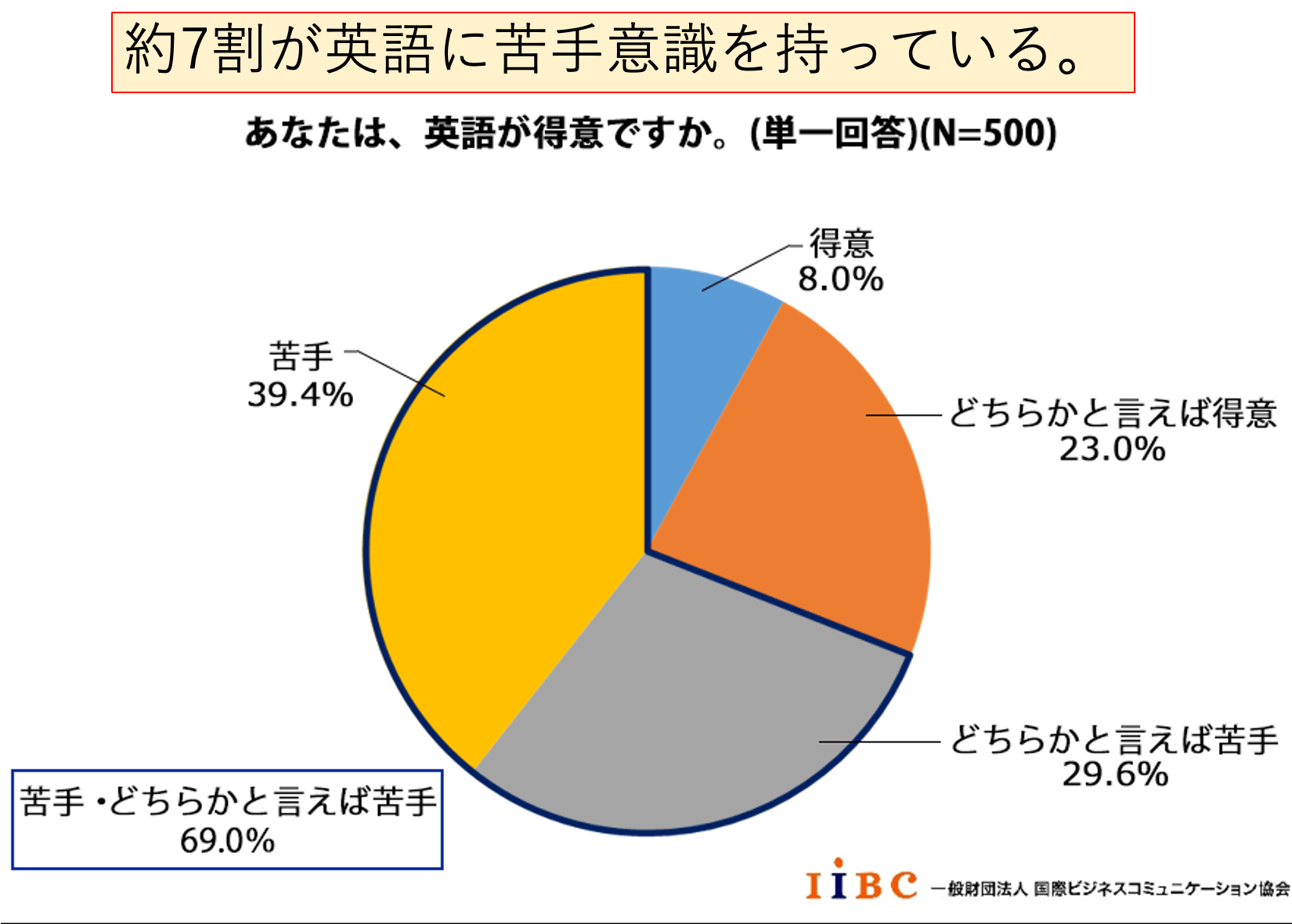 この結果を見ると約7割の日本人が、英語に苦手意識を持っていることがわかります。