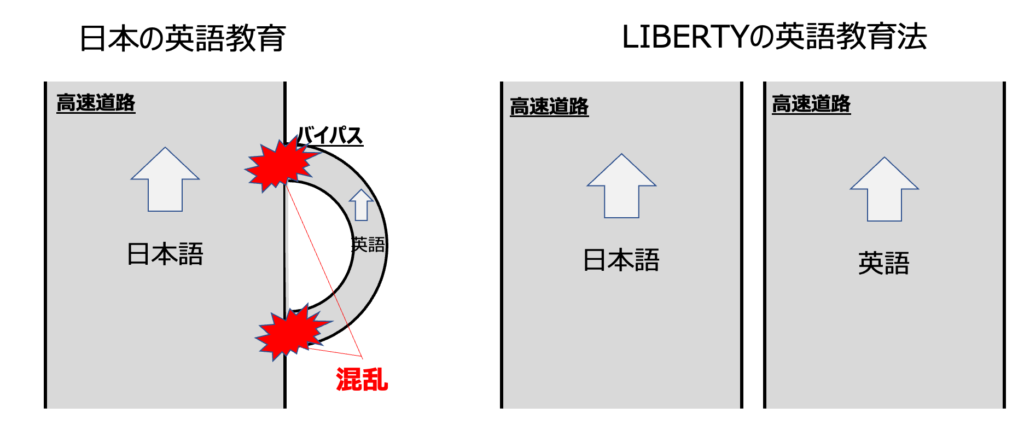 しかし、LIBERTYでは学校教育や他の英語スクールと全く異なるアプローチで英語を学びます。