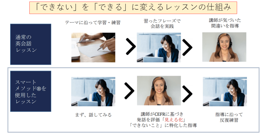 毎回のレッスンで、スピーキング力を判定し、その場で改善のアドバイスをしてくれるということです。だから、どんどんスピーキング力が伸びるんです。
