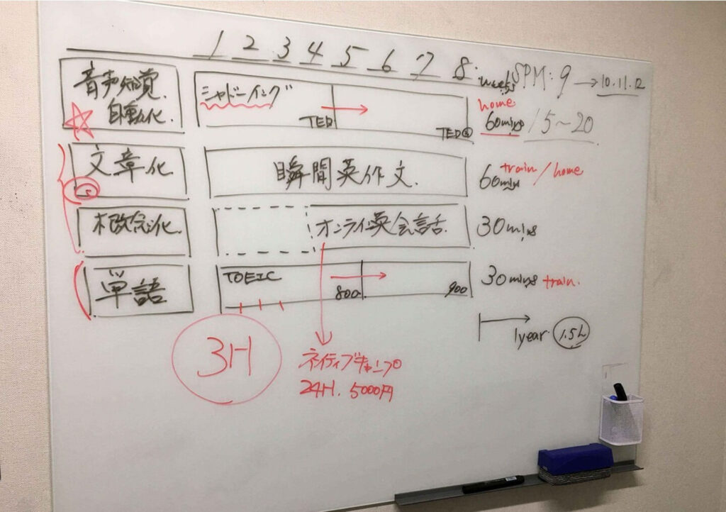 このスタイルで学習をすると、どうしてもスピーキングが伸びるのに時間がかかってしまいます。なぜなら、少しずつしか表現を覚えたり改善したりできないからですね。