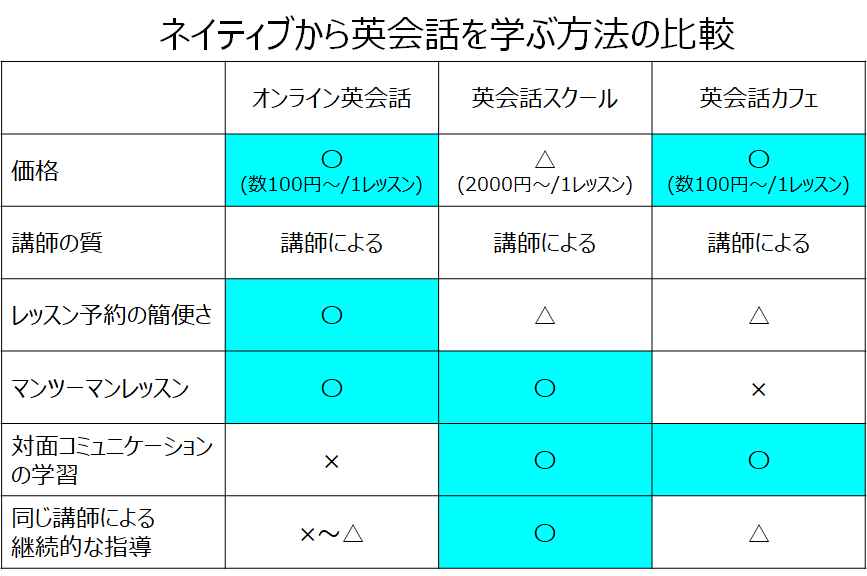 ここからは、ネイティブからレッスンを受ける、おすすめの方法を比較します。