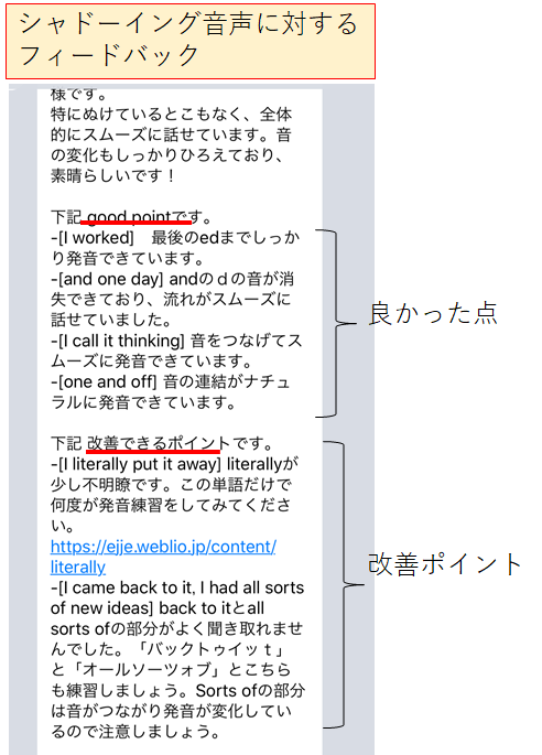 毎日スマホで音源を聞きながら、シャドーイングの練習をします。一日の最後に、LINEで自分のシャドーイングの音声を録音しコンサルタントに送ると、翌日にはシャドーイング音声へのフィードバックが返ってきます。