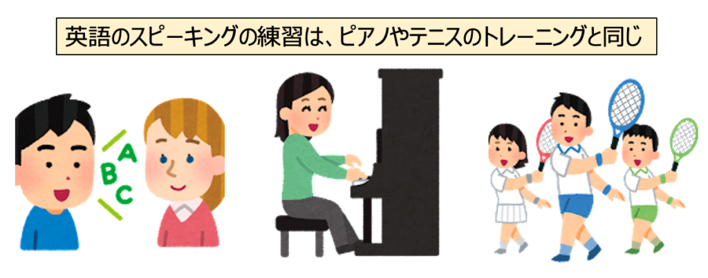 英語のスピーキングも同じです。スピーキング力を伸ばすトレーニングをしない限り、英語を話せるようにならないんです。