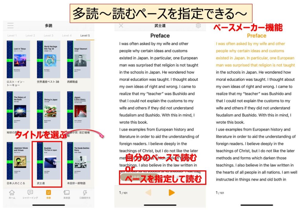 他にもアプリならではのメリットがあります。それは、読むペースを指定できること。