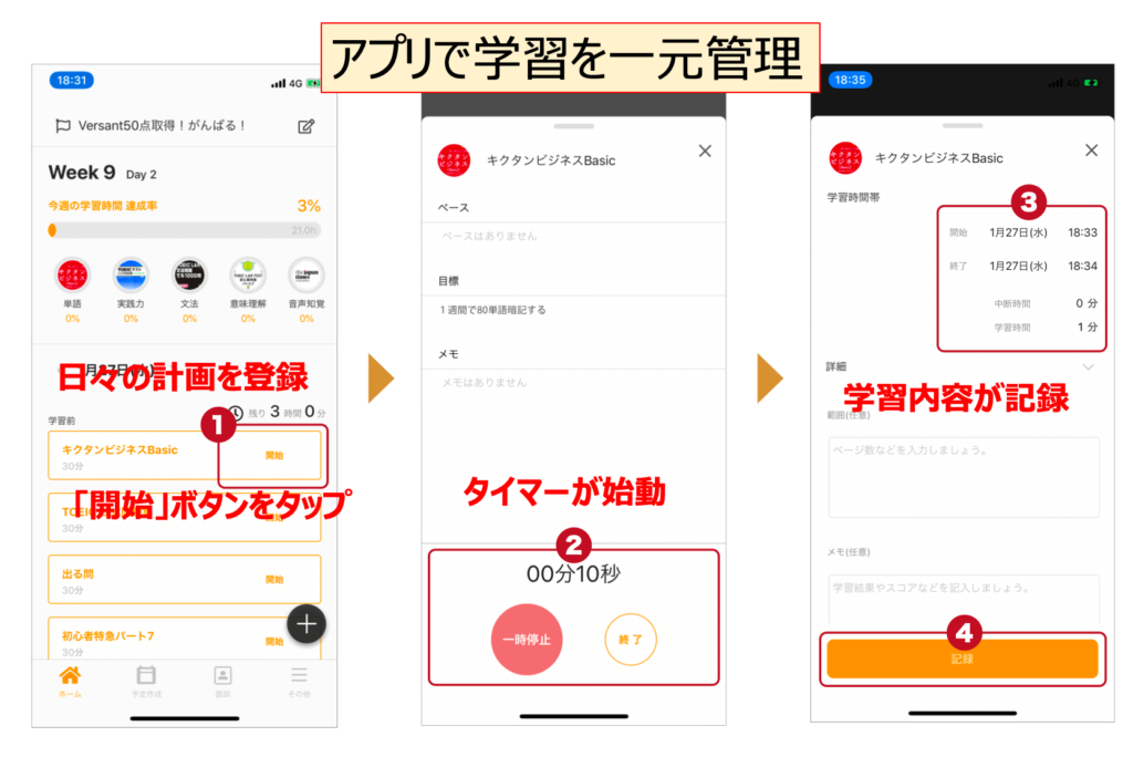 今回、アプリで学習計画と記録を一元管理できるようになりました。