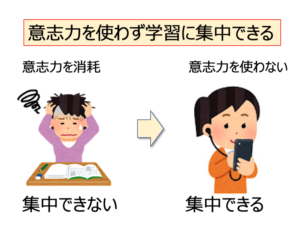 そうすると学習に集中するまでに時間がかかりますし、意志の力を使います。