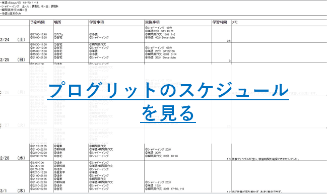 次にプログリット受講中のスケジュールを紹介します。