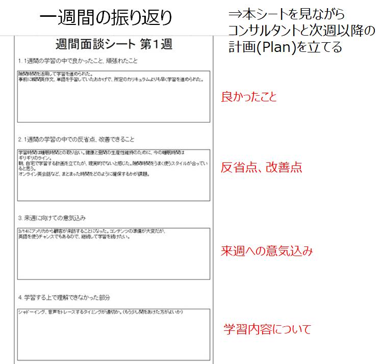 このシートはコンサルタントと共有しますが、基本的には自分で学習を管理するための仕組みです。
