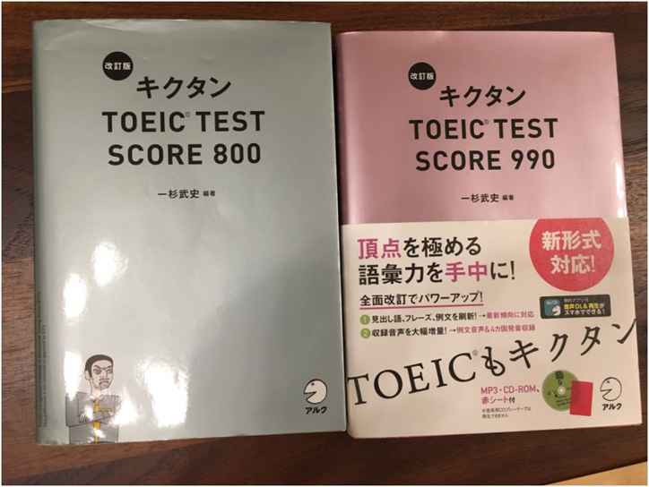 語彙を増やすためにアルク社のキクタンシリーズに取り組みました。私が取り組んだのはTOEIC800とTOEIC990の二冊です。