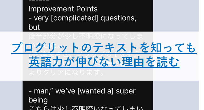 残念ながらプログリットで使うテキストを知っても英語力は伸びません。