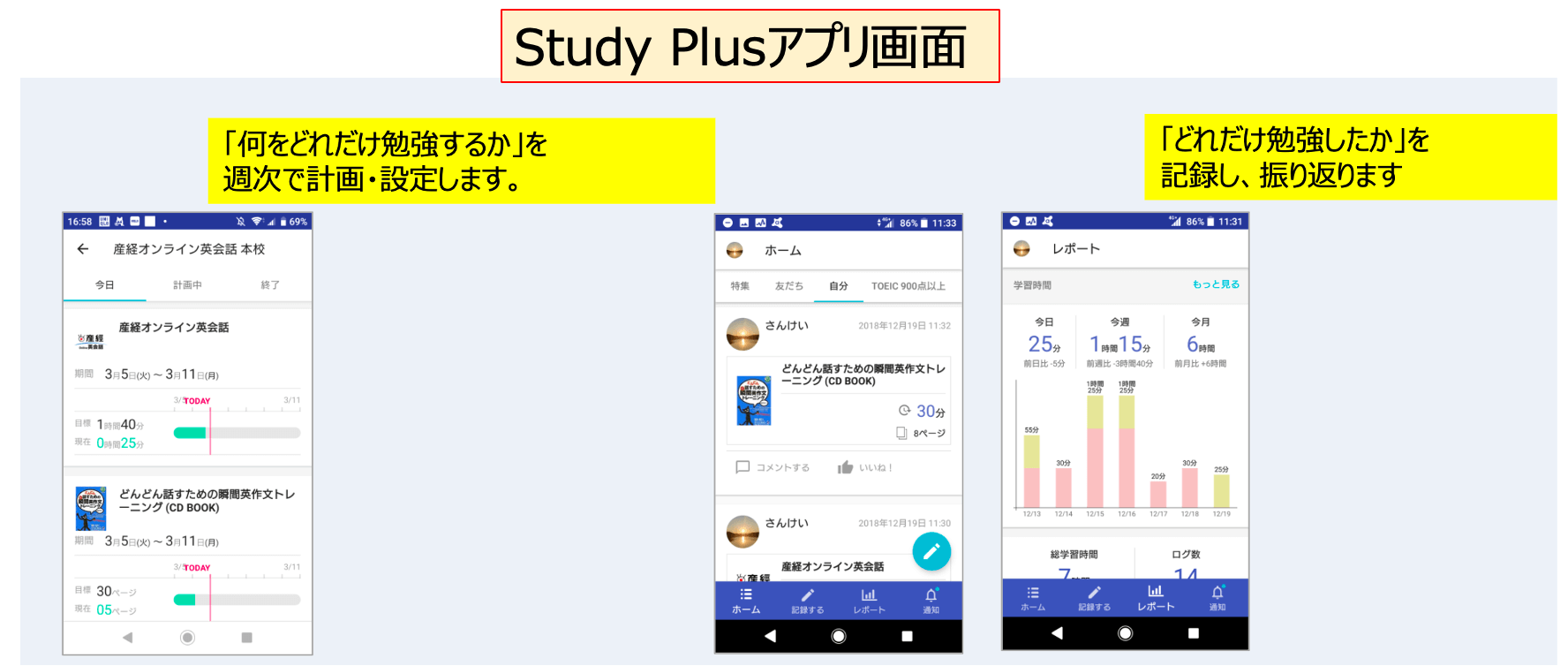 具体的には“Study Plus”というアプリ。このアプリを使うと、学習内容や勉強時間を「見える化」することができます。