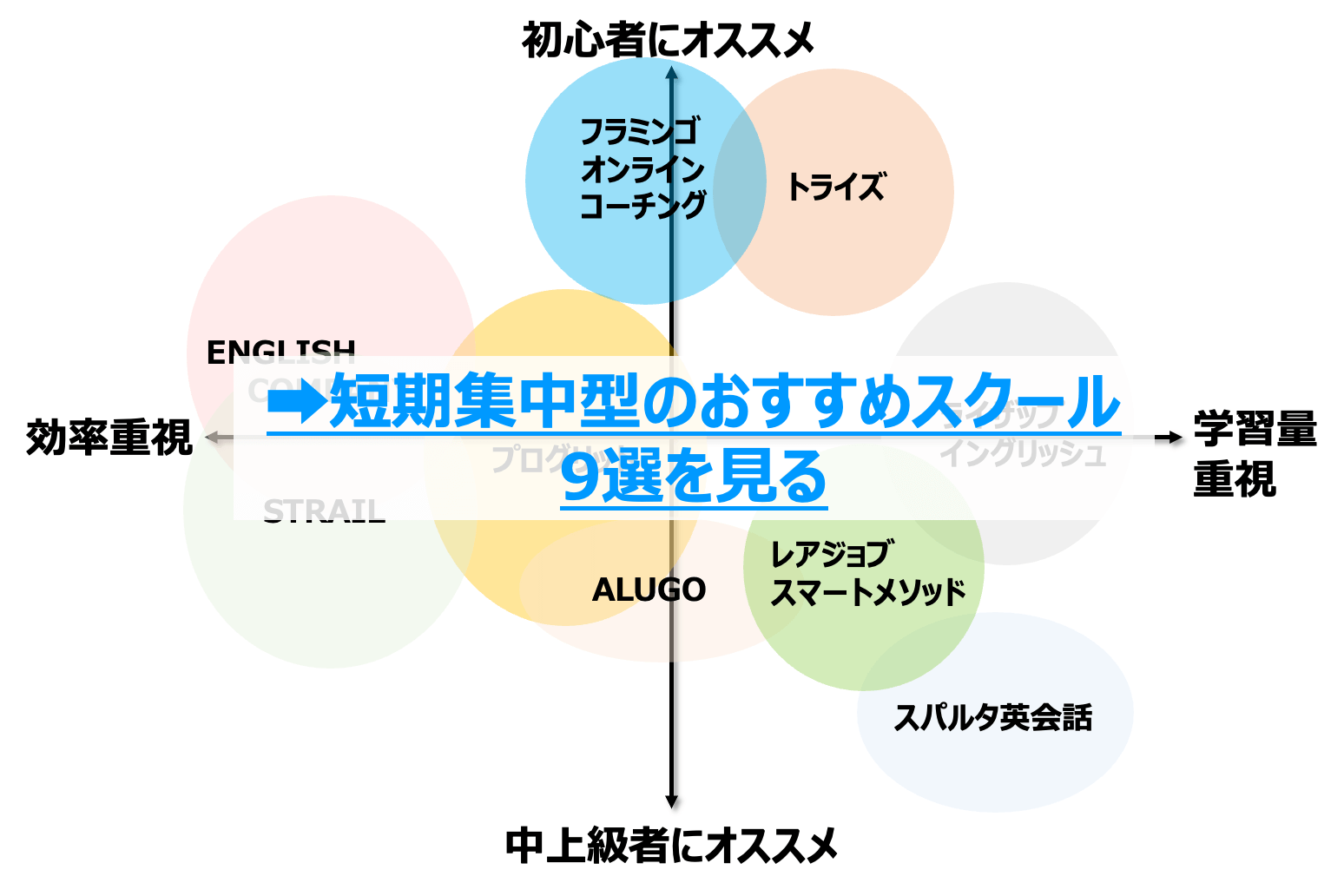 なので、短期集中のスクールを選ぶときも「ゴールと現状の英語を明確にして、弱点を克服」できる所を選ぶべきです。