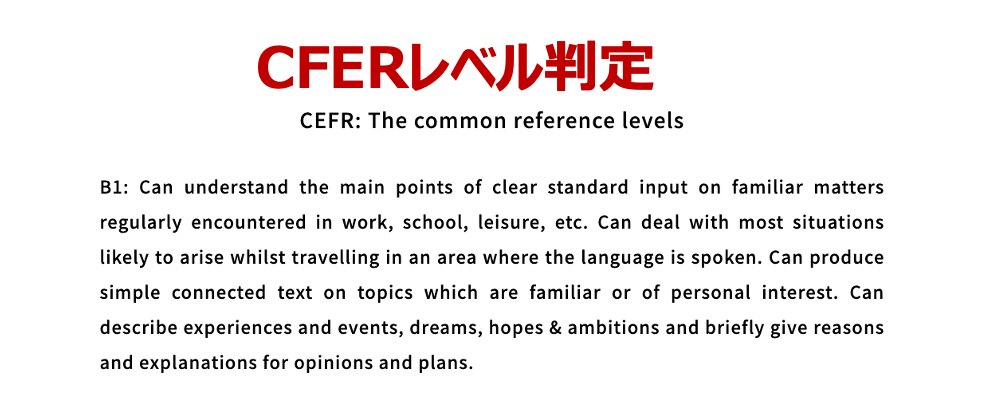 また、”CFER(セファール)”と呼ばれる英語力を測る国際的な指標に基づいて評価をしてもらえます。