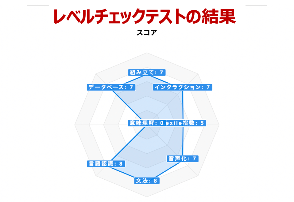 リンクを開くと、レベルチェックテストの結果を見られます。