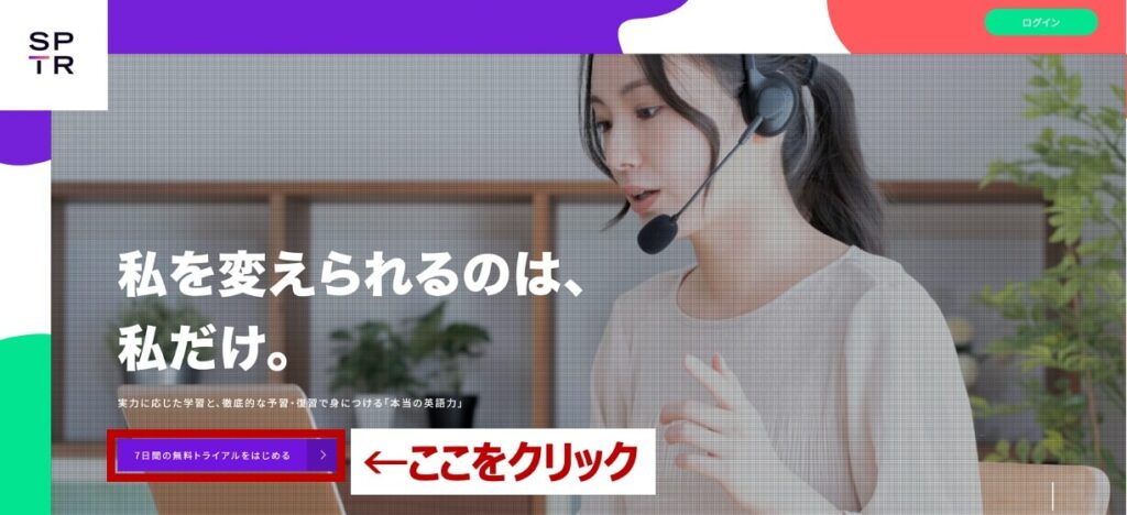公式HPにアクセスし、「7日間の無料トライアルをはじめる」をクリックします。
