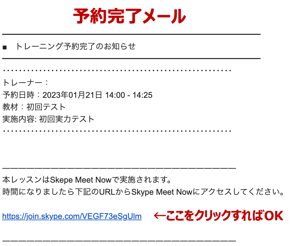 当日、時間になったらメールに記載されている、Skype Meet Nowのリンクをクリックすればレッスンが始まります。