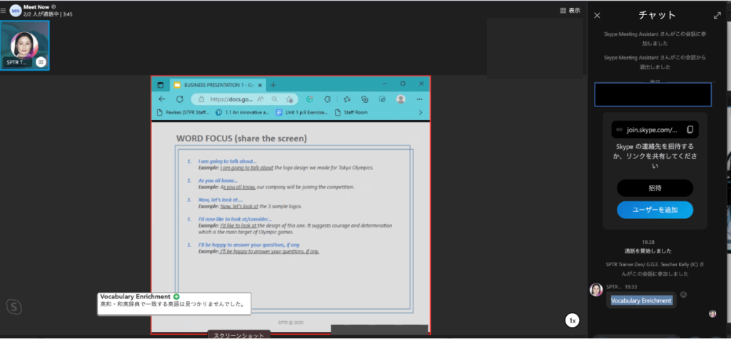 実際に受けることにしたのは“Business Presentation 1”のレッスン。