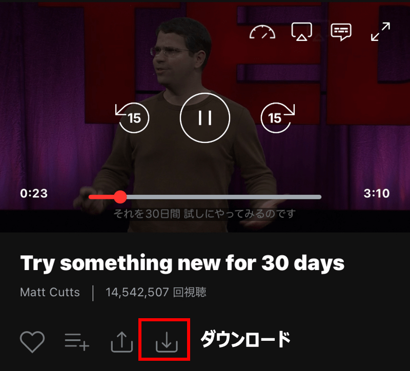 動画はダウンロード可能なので、Wi-Fi環境でダウンロードしておけば、オフラインでも視聴できるのが嬉しいですね。