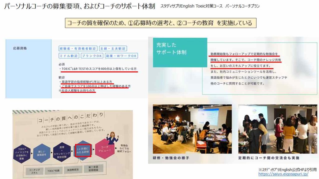 この内容を見てわかるように、コーチの質には徹底的に拘っています。