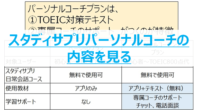 ここまで、スタディサプリEnglish TOEICパーソナルコーチプランの実績と口コミを紹介してきました。短期間でTOEICスコアを伸ばすのにパーソナルコーチの存在が大きいことがわかると思います。