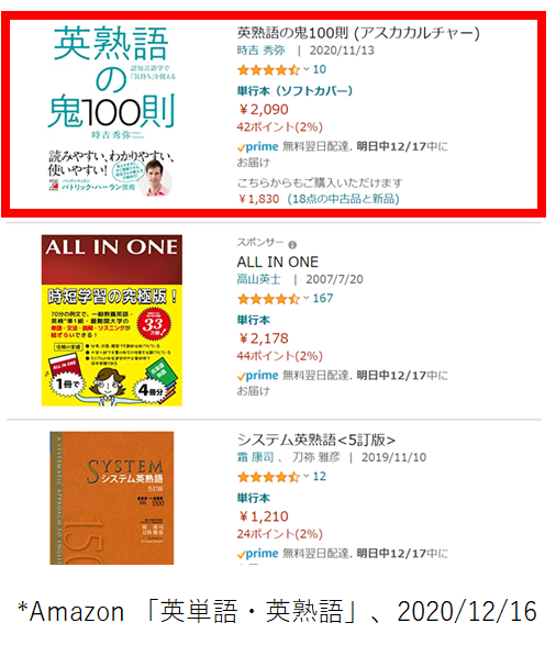 12/12の時点で、既に1万4000部の増版が決まっています。「難解な英熟語が非常にわかりやすく解説されている」と評判で、Amazonの「英単語・熟語」ランキングでも4位になっています(2020年12月16日)。