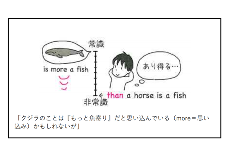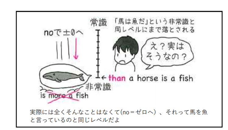 “than a horse is a fish”で、「馬は魚です」という非常識を基準にして考えます。