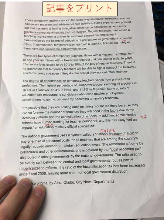 記事をプリントして読み、分からない単語を調べました。プリントせずにオンラインで記事を読んで調べるだけでもOKです。
