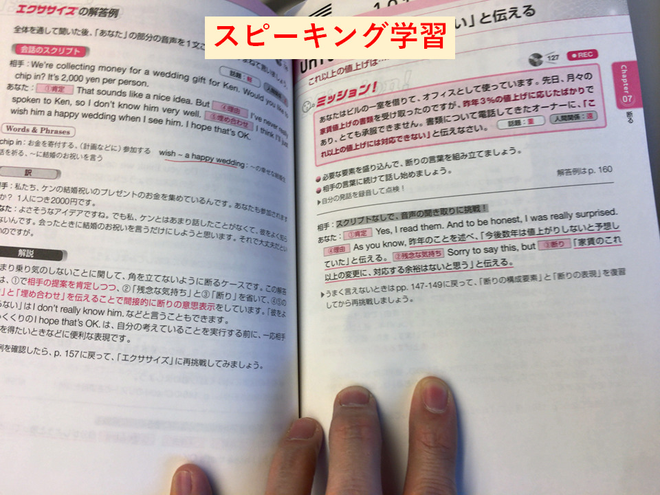 話す英語』に出てくる英語表現は、そこまで難しいものではありません。教材として読むだけだと、サラっと流してしまうものが大半です。しかし、「実際の場面で、パッと使える」レベルに到達していない表現も多くあります