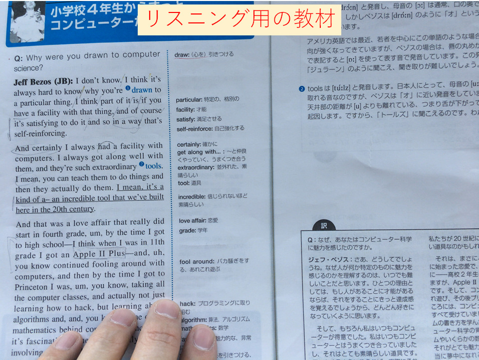 ビル・ゲイツ、ハワード・シュルツなど著名な経営者のインタビューで内容も面白く、飽きずにシャドーイングに取り組むことができました。抑揚やリズムまで含めて、本人のマネをしながらシャドーイングをしていると、次第にしゃべっている経営者の性格がイメージできるようになってくるので面白いです。