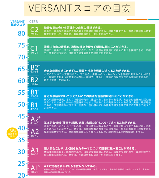 (*)VERSANTは英語のスピーキングレベルを測定するテストで、グローバル企業にも採用されている信頼性が高いです。