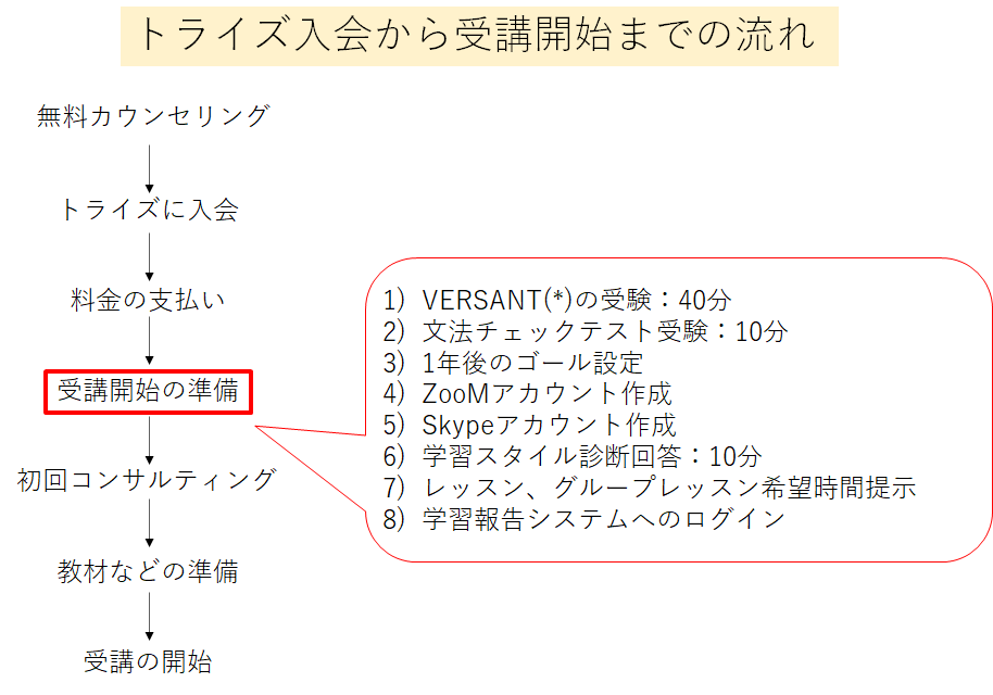 トライズに入会した後、実際に受講を開始するまでに様々な準備をします。